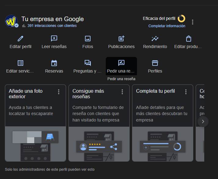Si tú gestionas la ficha de la empresa, todo se hace desde el panel de Google Business Profile.